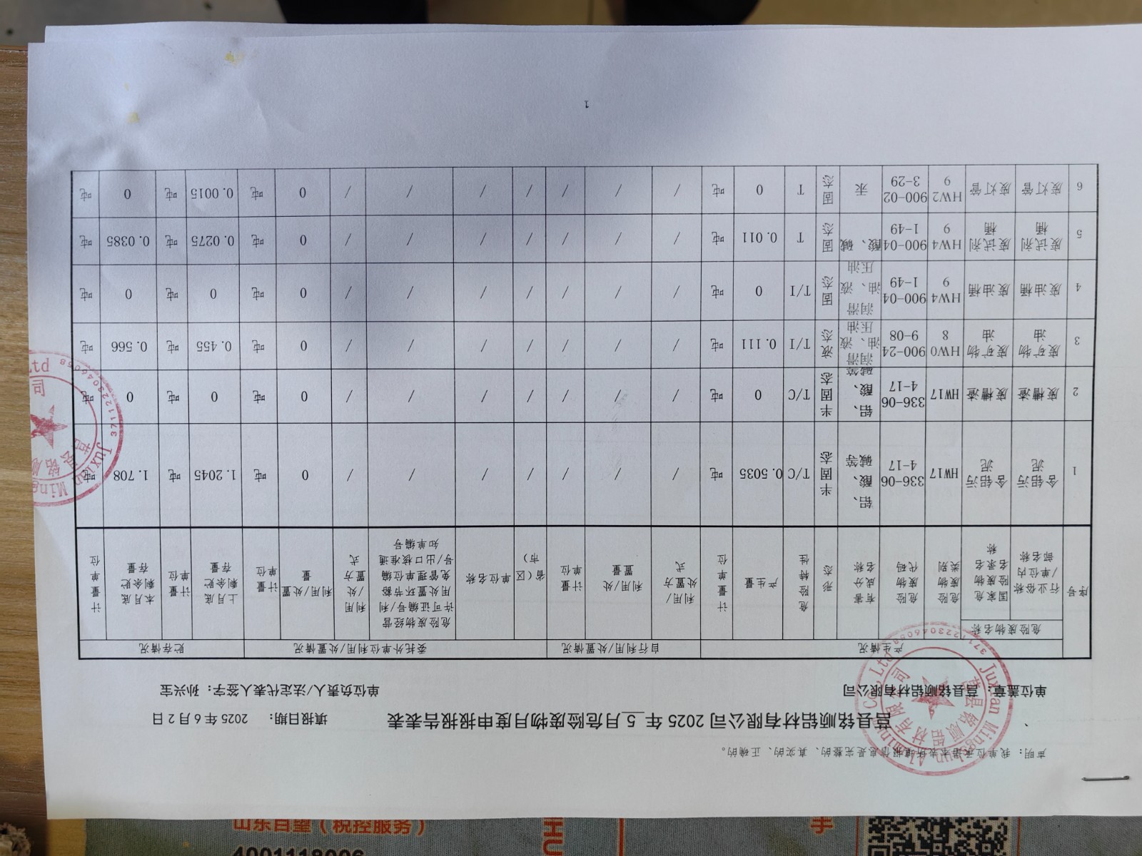 2025年6月危险废物报表新表