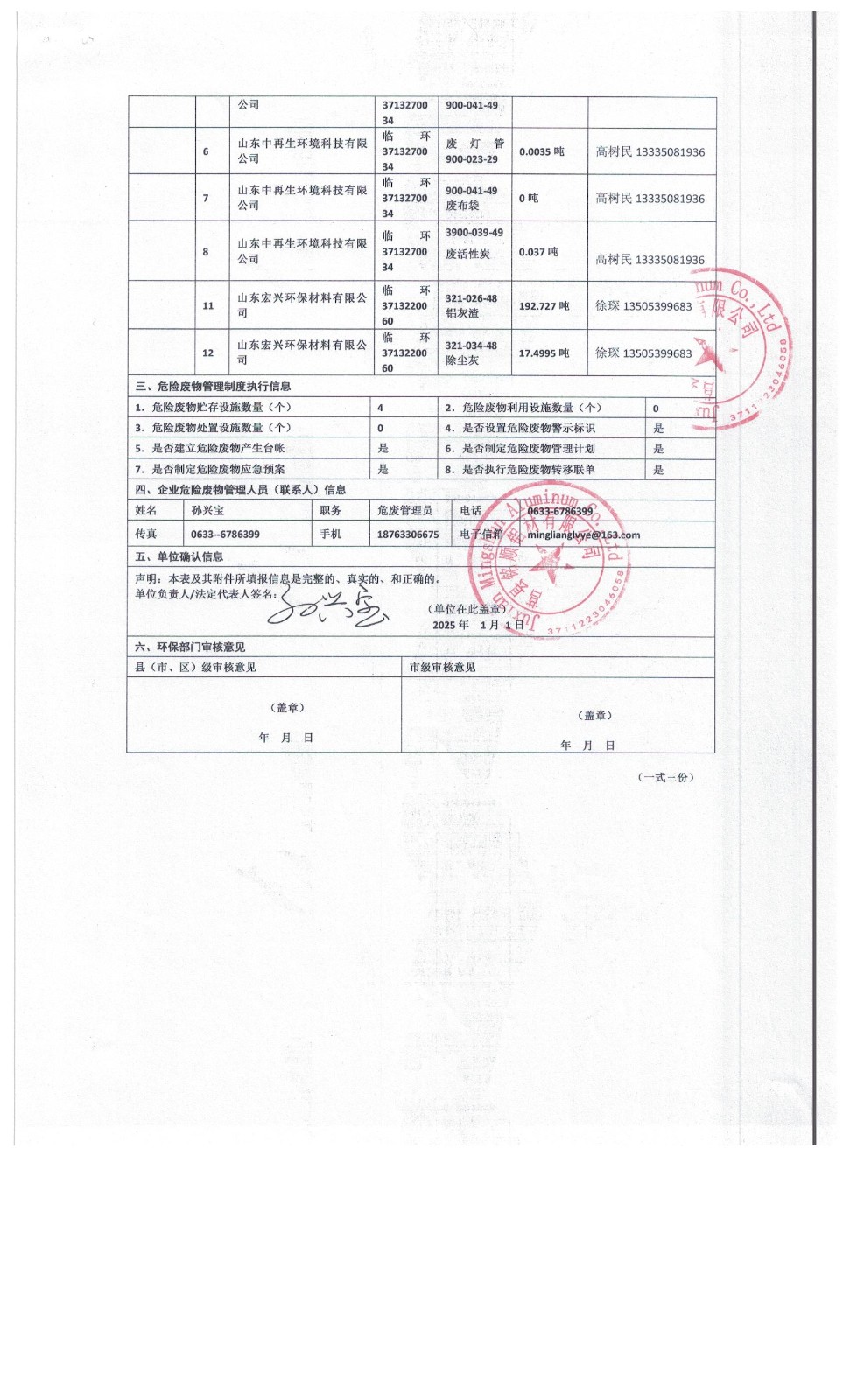 2025年12月危险废物报表新表