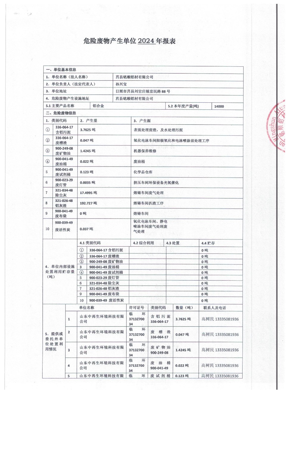 2024年度危险废物报表