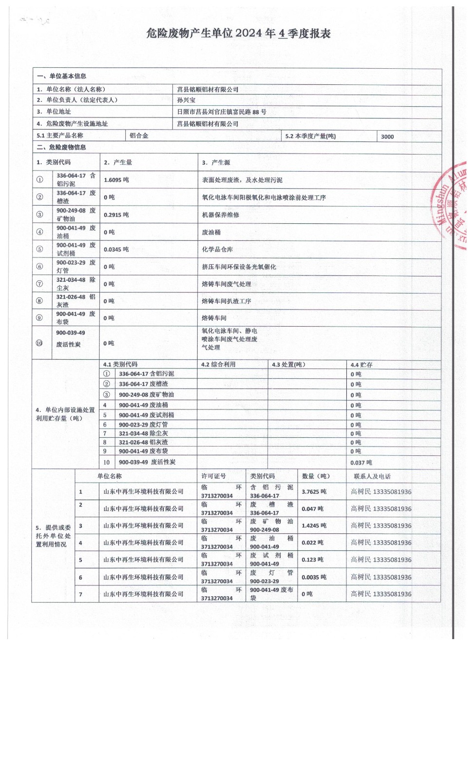 莒县铭顺铝材有限公司清洁生产审核验收公示