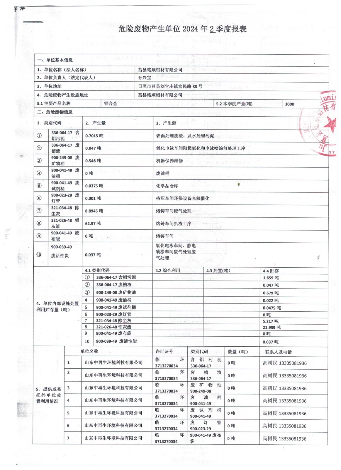 2024年第2季度固体废物污染环境防治信息