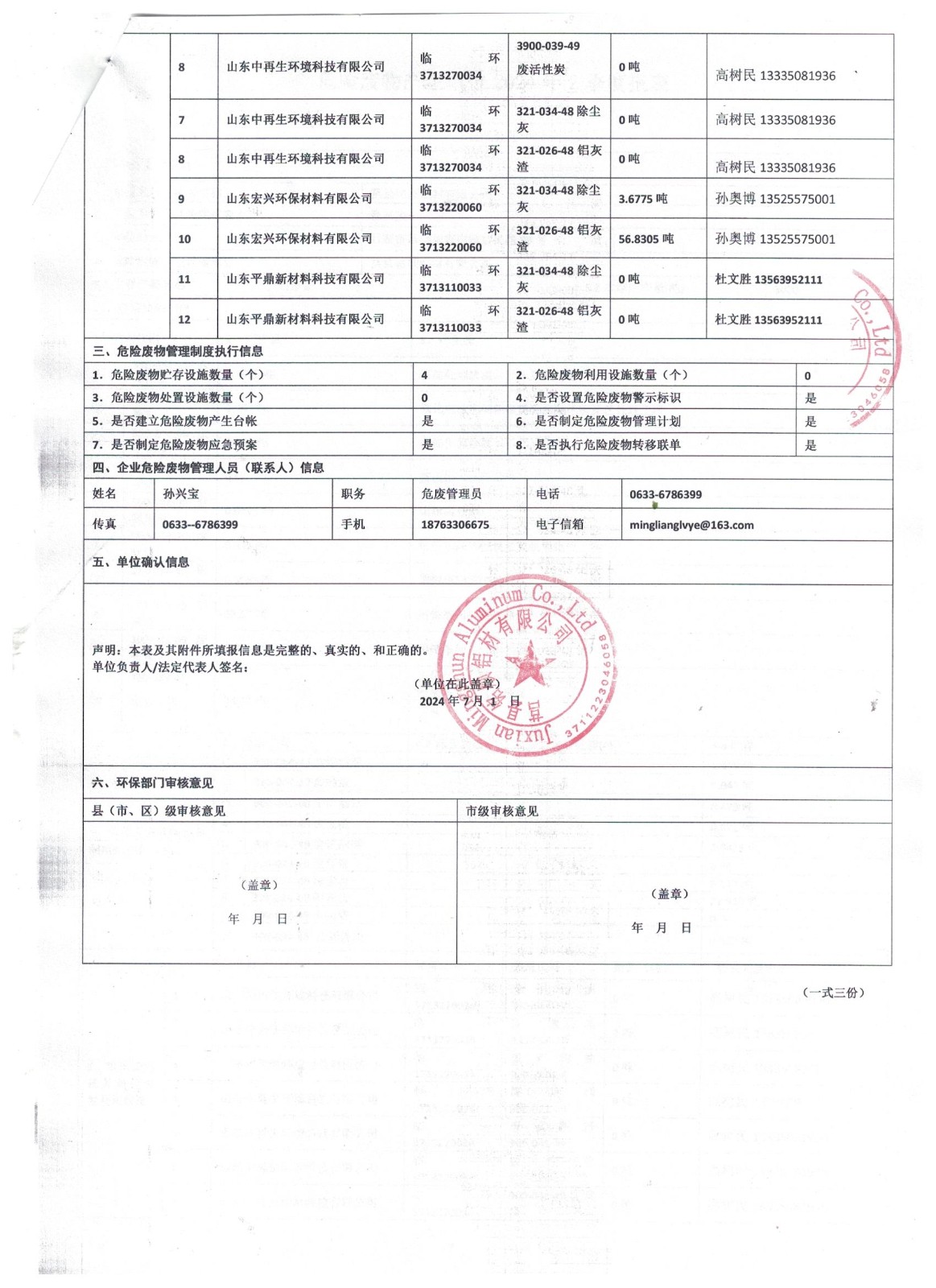 2024年6月危险废物报表