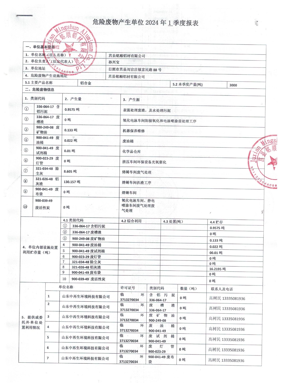 2024年4月危险废物报表