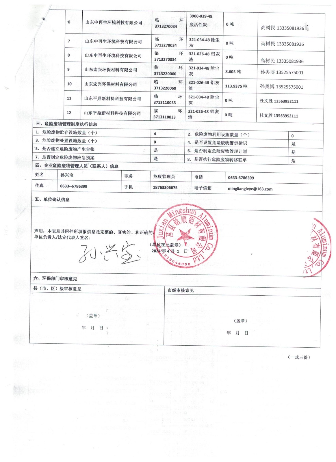 2024年3月危险废物报表新表