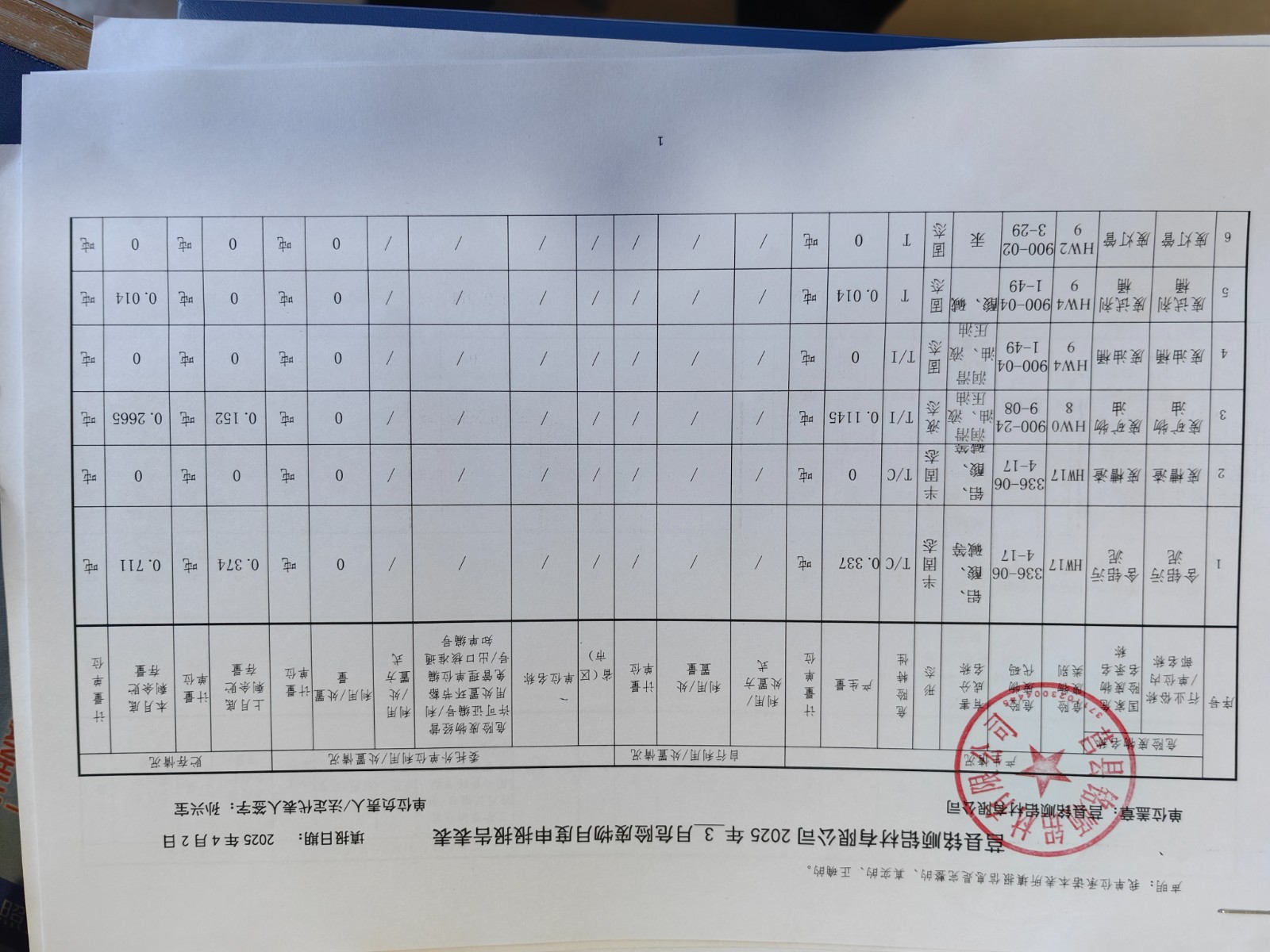 2025年3月危险废物报表新表